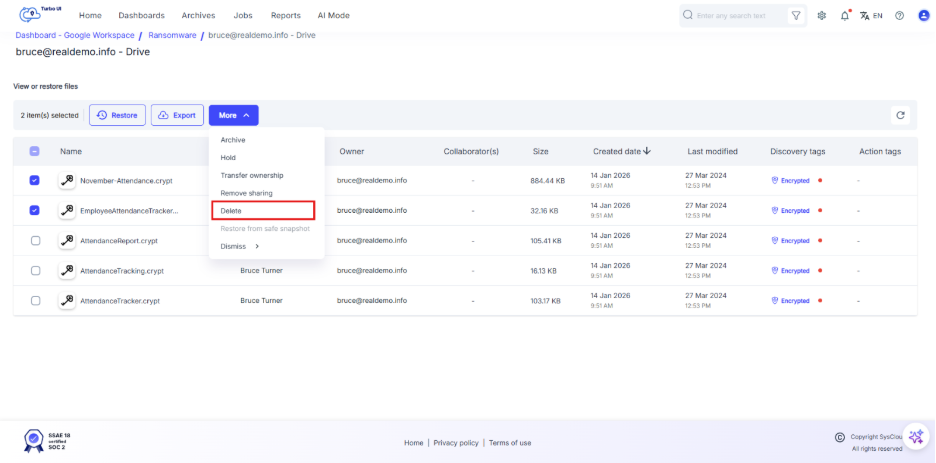 How do I delete encrypted and ransomware infected files from my backup archives and live cloud?
