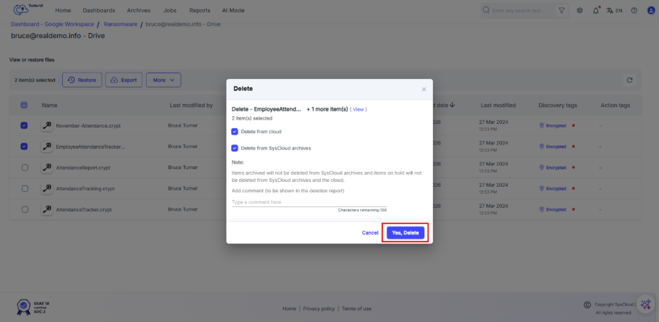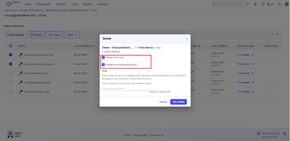 Step 5: Select “Yes, Delete” to confirm. The selected file(s) will be deleted based on the option(s) you chose.