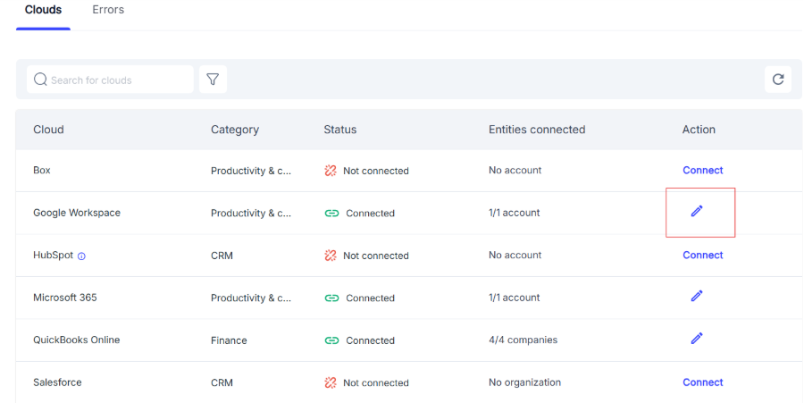- Choose the cloud application for which you want to perform the on-demand sync.
