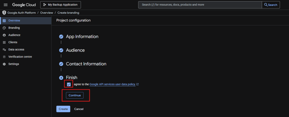 - Project Name: Enter a meaningful name like "My Backup Application" or "OAuth Integration Project"
