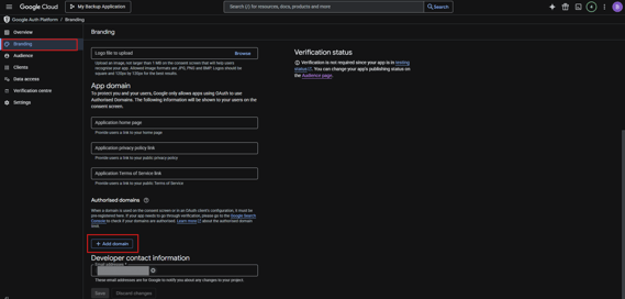 - Click on 'Branding' in the left navigation and scroll-down to find 'Authorized domains'.