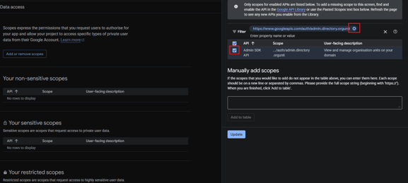 - Once you've selected all 14 scopes, click "UPDATE"