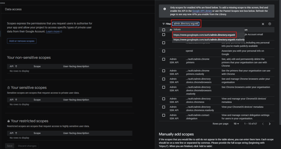 - Click "ADD OR REMOVE SCOPES"