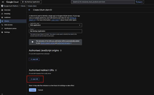 - In the Authorized redirect URIs section, Click on 'Add URI' and enter your redirect URI exactly as shown below: