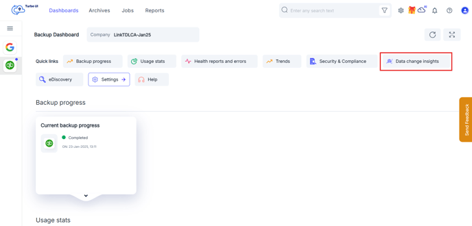 Dashboard:- Click the Data change insights quick link from the main dashboard.