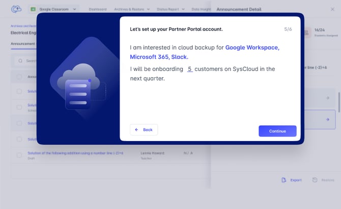 Step 7: Enter the number of customers you would be onboarding to SysCloud in the next quarter.