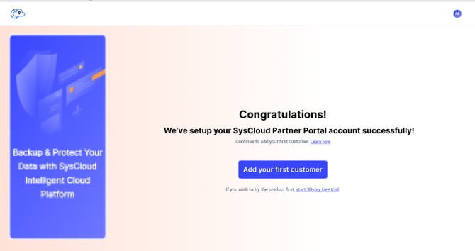 Step 10: You Partner account is now setup and you can proceed to add your customer now.