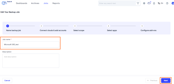 Step 3: Name the backup job and give a description (optional). Click on “Next.”