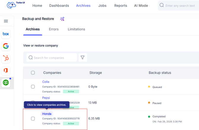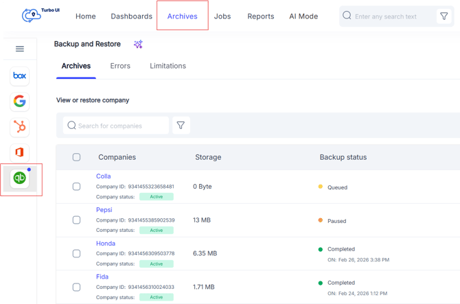 Step 2: Click Archives, and then select QuickBooks Online from the left sidebar.