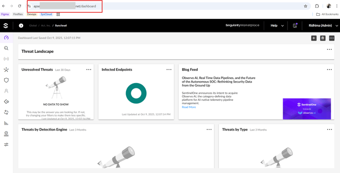 - Look at the address bar, the account URL will appear in the format: xxxxx.sentinelone.net